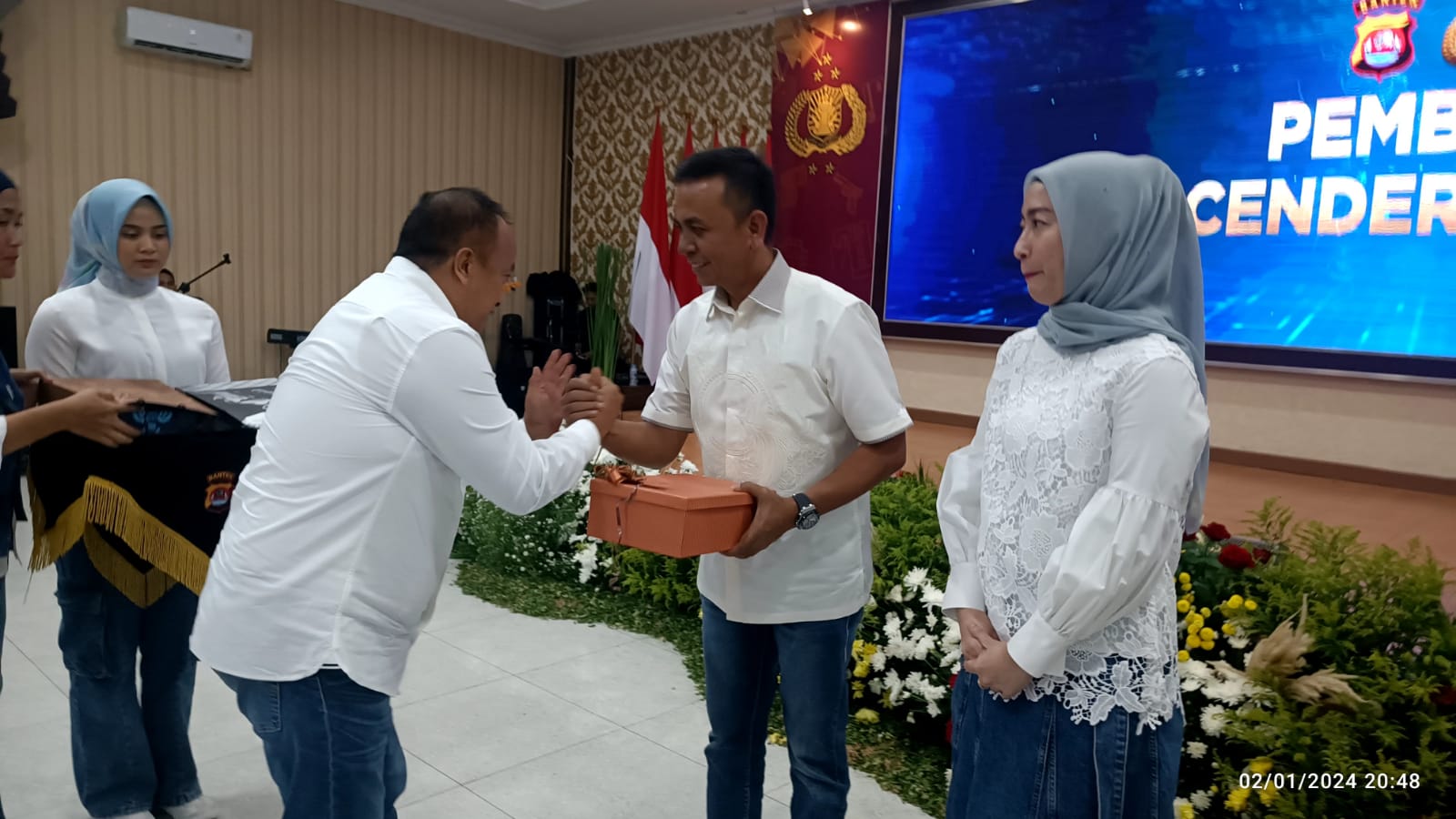Dalam kesempatan tersebut, Plt. Kepala Bapenda Banten berkesempatan memberikan souvenir atau bingkisan kepada Kombespol Firman Darmansyah sebagai salah satu bentuk apresiasi dalam sinergitas Tim Pembina Samsat Provinsi Banten selama menjabat sebagai Dirlantas Polda Banten.